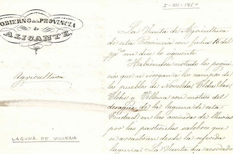 La historia reciente arranca con la Laguna y la Lagunilla de Villena, desecadas a principios del siglo XIX mediante la obra de ingeniería hidráulica tradicional y artificial; la Acequia del Rey. Poco a poco y derivado de diversos factores, se fue produciendo una serie de cambios que transformaron el paisaje y nuestra relación con el agua, haciéndola cada vez más escasa y profundamente valiosa. De las acequias abiertas y el riego a manta evolucionamos hacia pozos profundos, motores y sistemas más eficientes de regadío. Generación tras generación aprendimos que el agua no solo se usa: se cuida, se organiza y se defiende para las siguientes generaciones respetando principios tan importantes como justicia, igualdad, solidaridad y sostenibilidad.